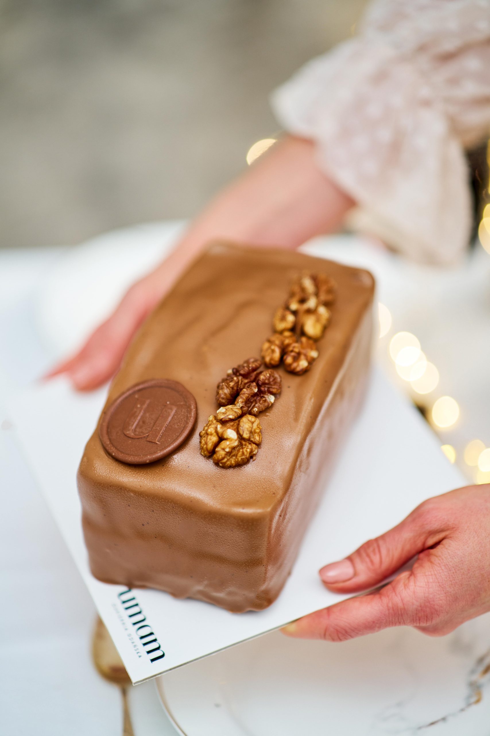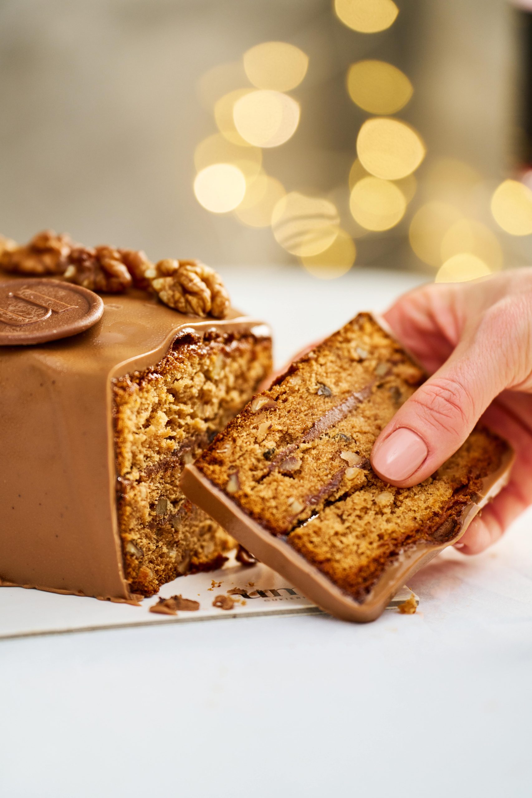 Skład : miód naturalny, masło 82%, przyprawa piernikowa ( cynamon, gałka muszkatołowa, goździk, anyż, imbir), cukier drobny, mąka, morela suszona, figa suszona, skórka pomarańczy, migdał cały, orzech włoski, orzechy laskowe, żółtko, śmietanka 36%, soda, drożdże, jaja, olej rzepakowy, proszek do pieczenia, białko, śliwka węgierska, czekolada mleczna, czekolada deserowa, masło kakaowe.