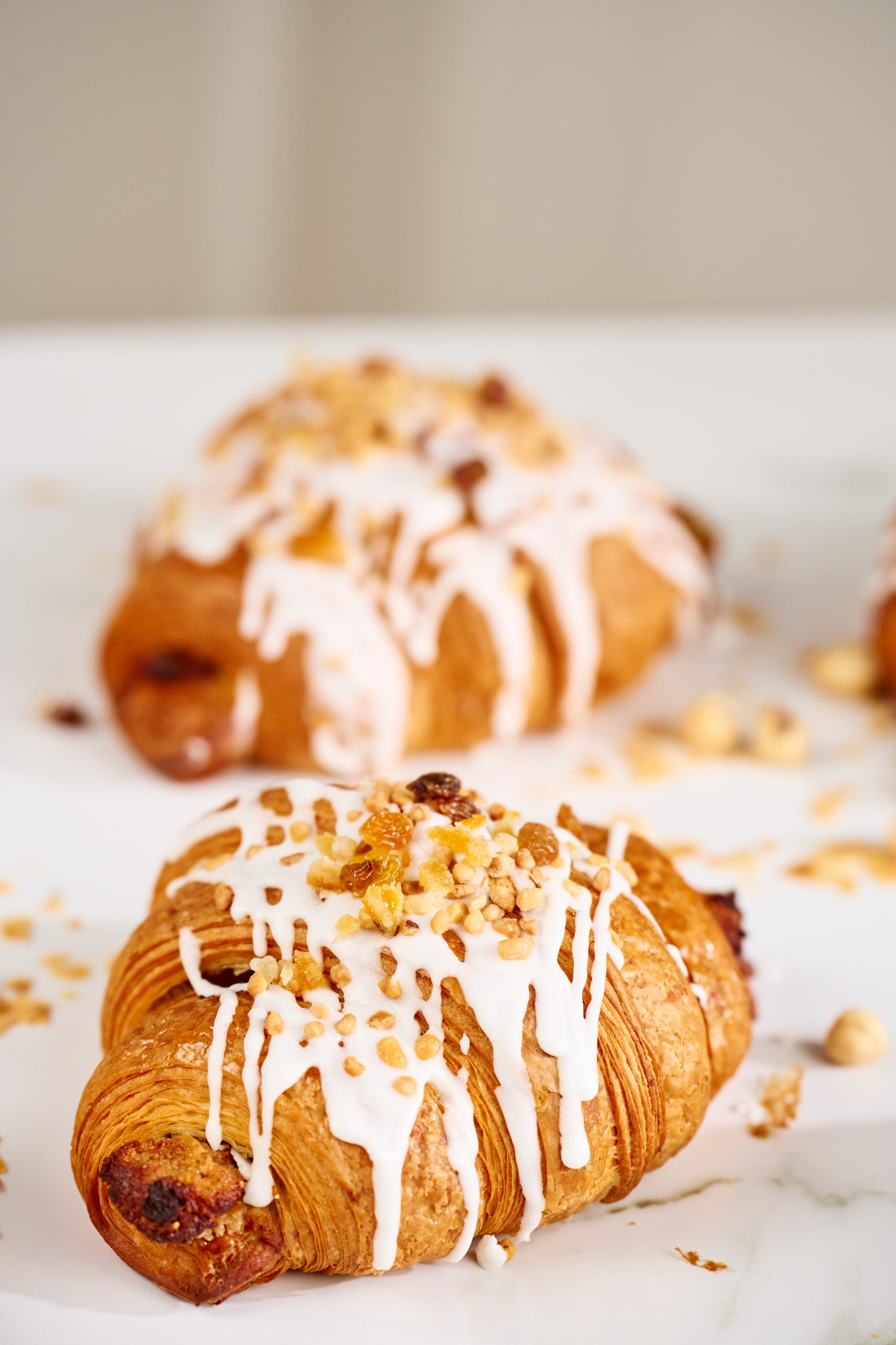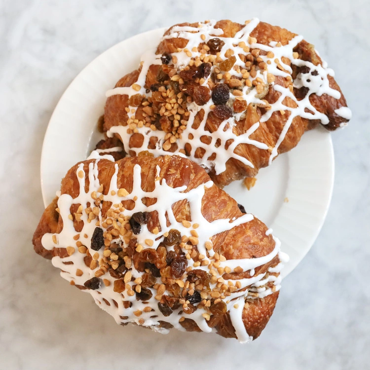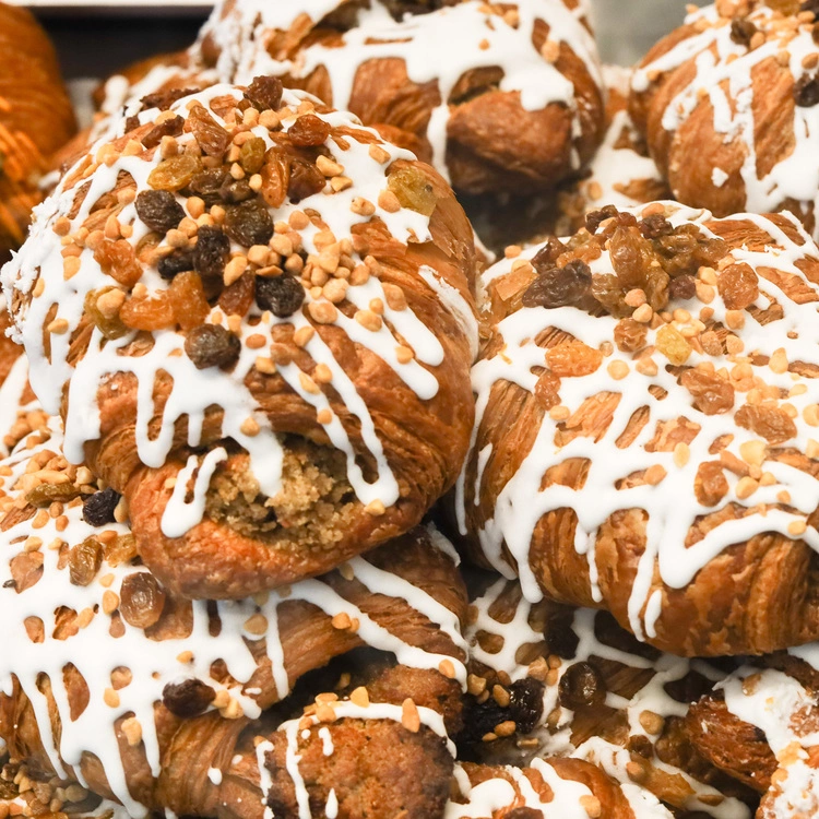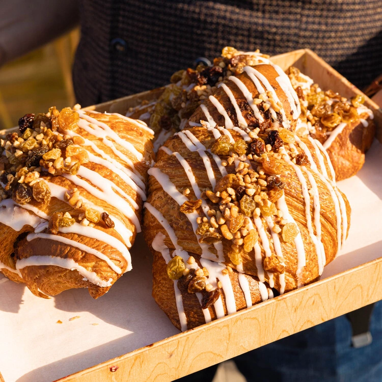 Rogale listopadowe to połączenie niewyobrażalnej ilości białego maku i bakalii zamknięte w puszystym cieście półfrancuskim z dodatkiem drożdży. Wnętrze rogali wzbogaciliśmy o marcepan, skórkę pomarańczową, amaretto i krem budyniowy, a ich wierzch ozdobiliśmy lukrem i bakaliami. Smak tradycji w naszym wydaniu gwarantuje rozkosz dla podniebienia już od pierwszego kęsa. Wielkość tegorocznych rogali zapewnia tych kęsów wiele.