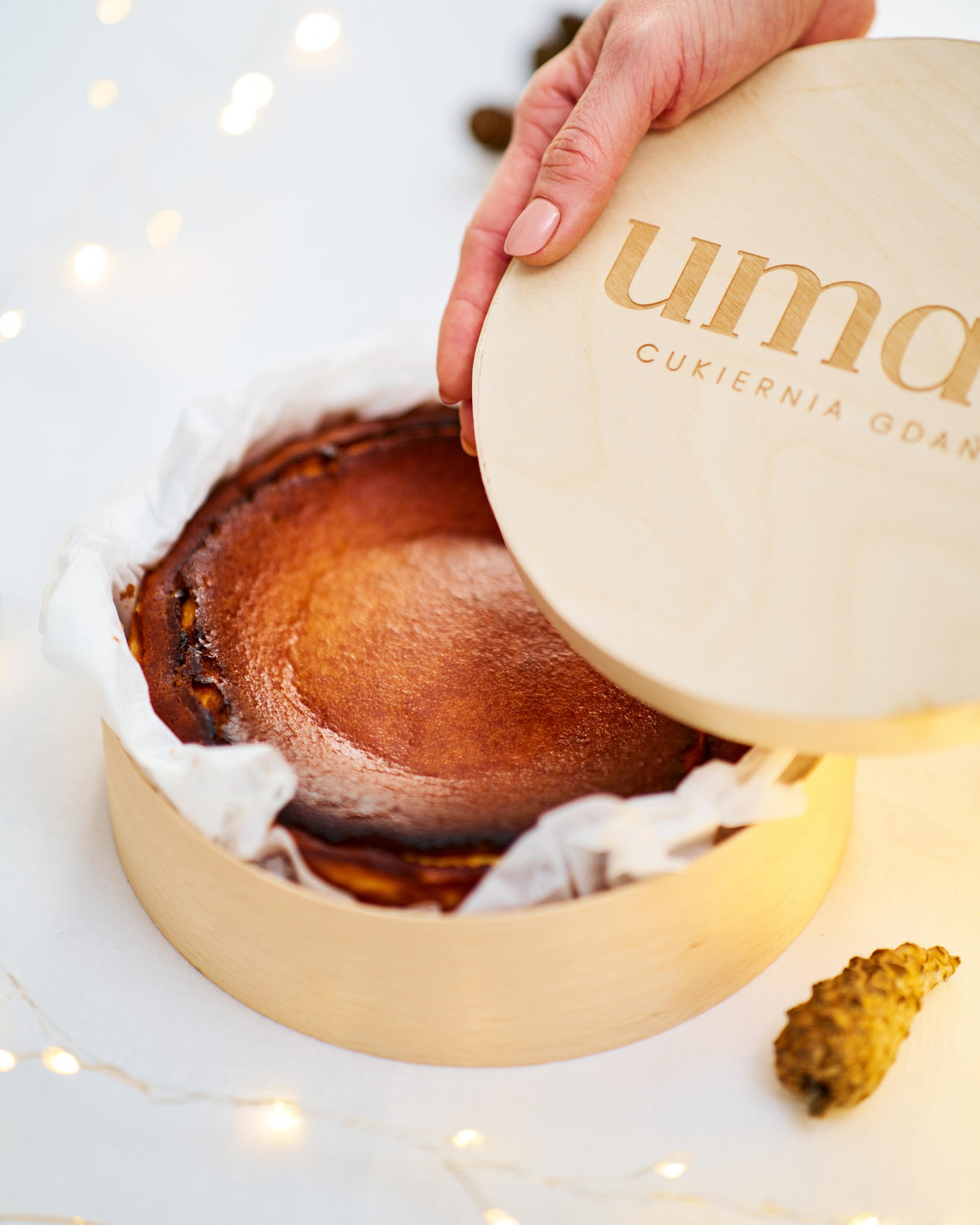 Sernik Baskijski UMAM to nowoczesny klasyk, który idealnie wpisuje się w świąteczne i wyjątkowe okazje, wprowadzając do stołu aromat i elegancję.