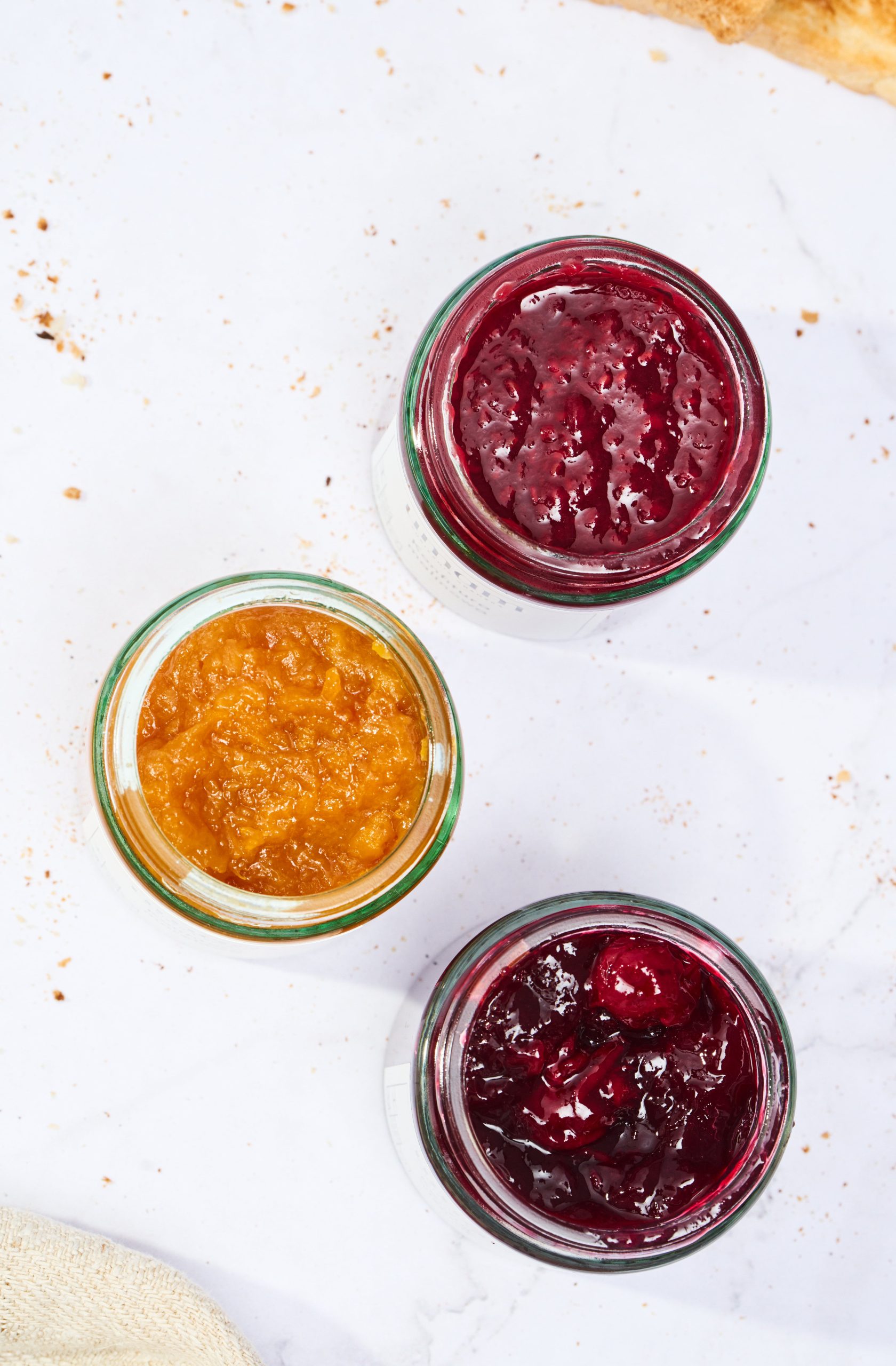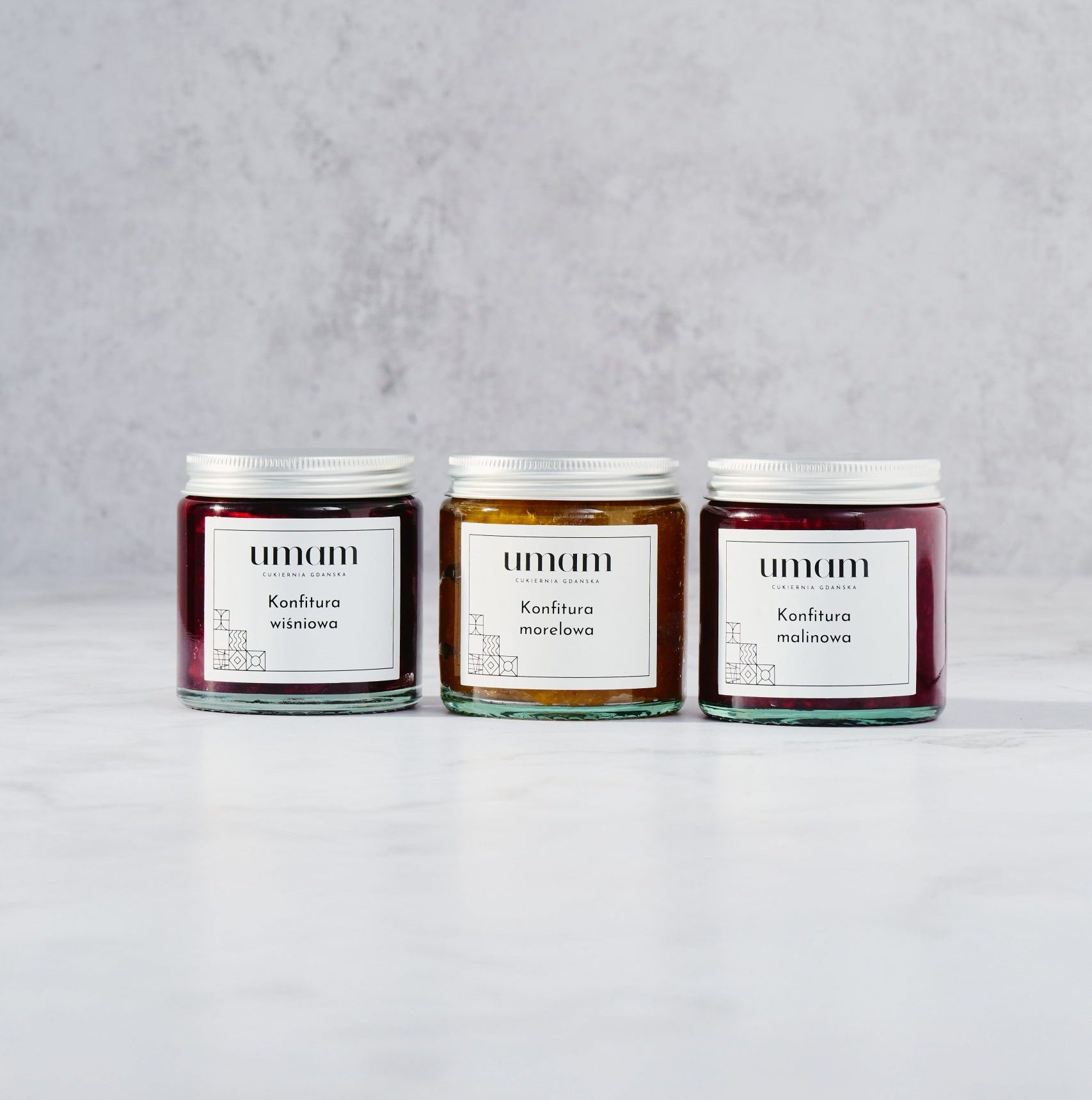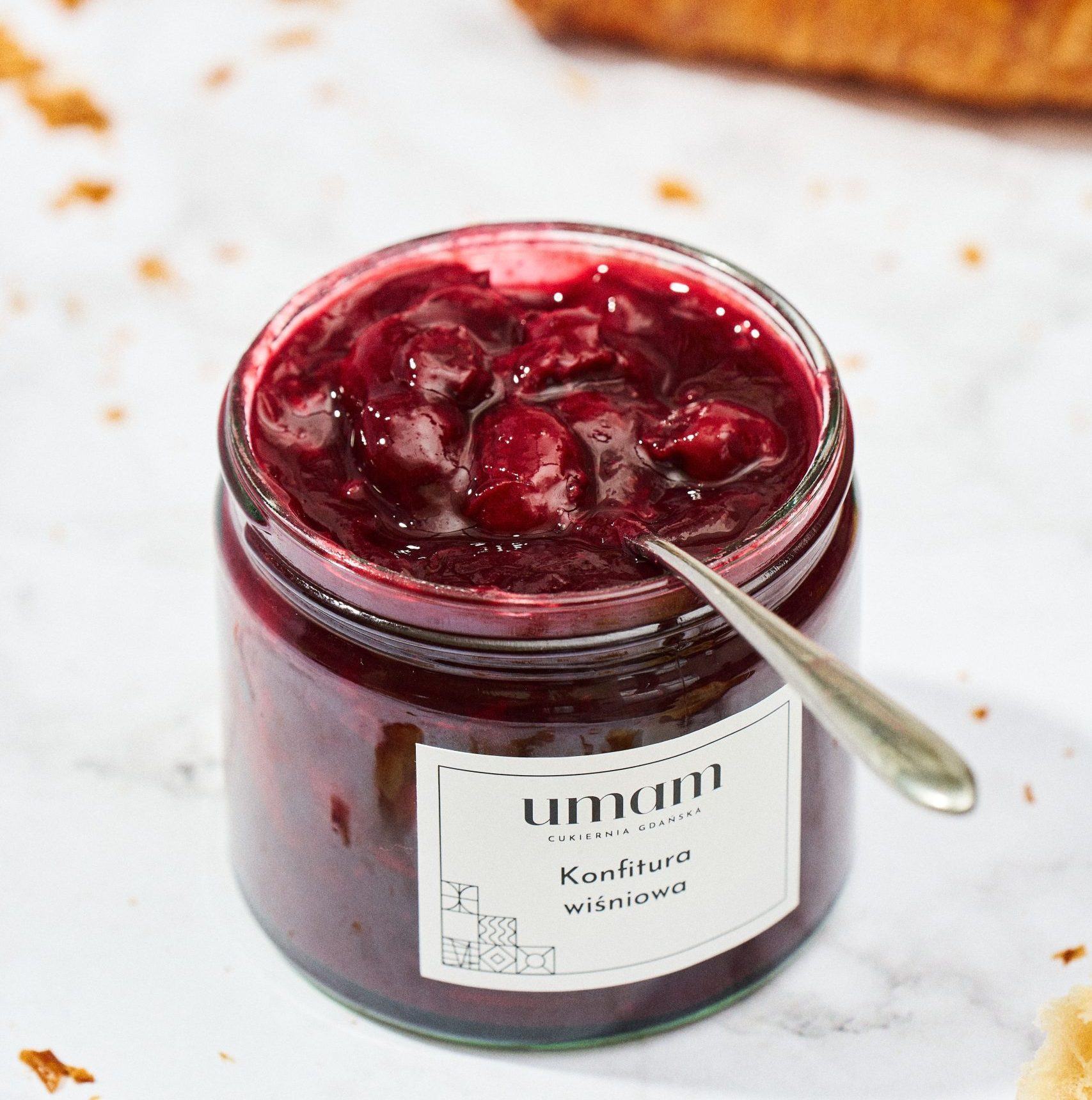 wiśnia, puree czerwona porzeczka, puree malina, cukier, pektyna.